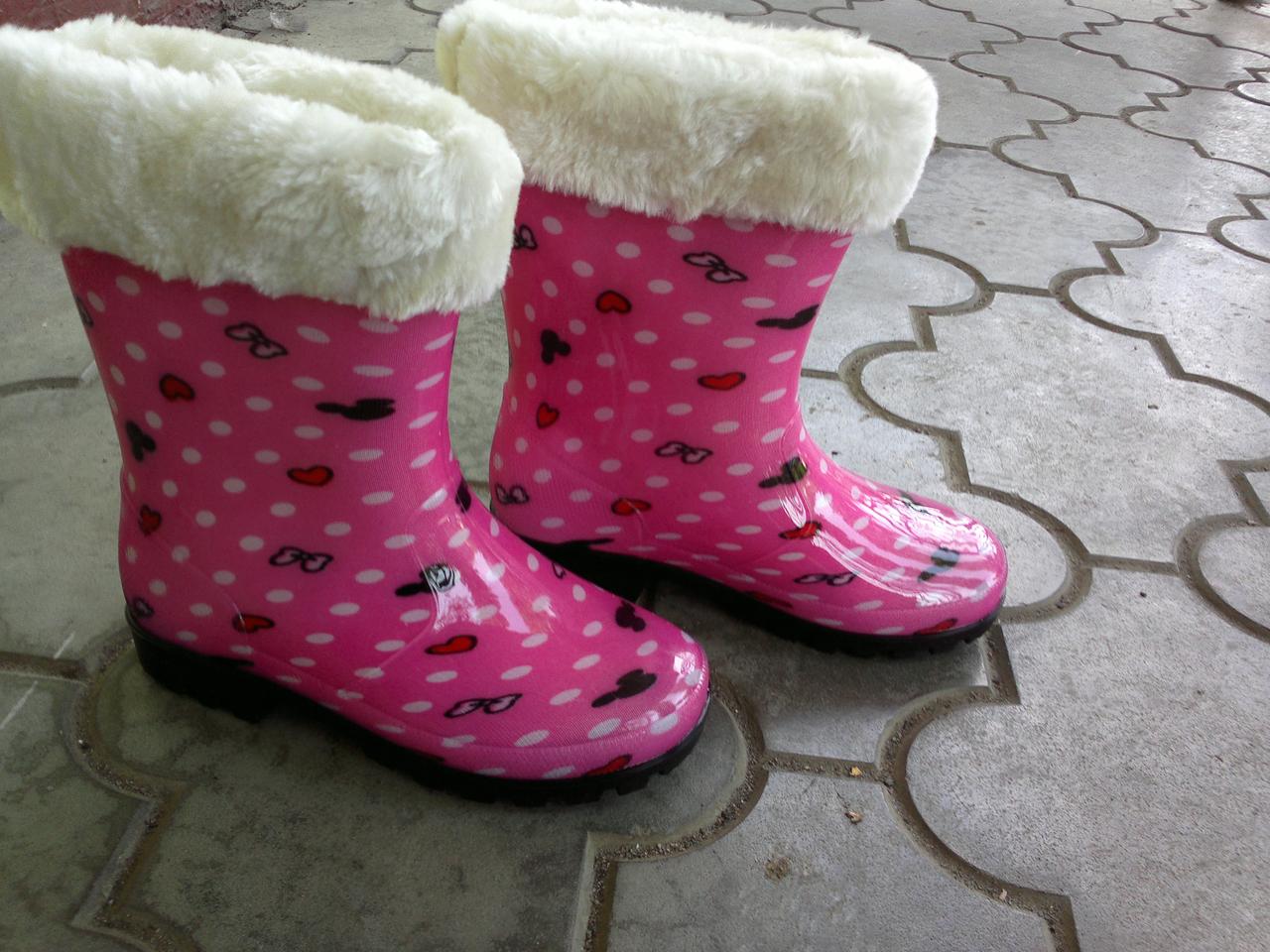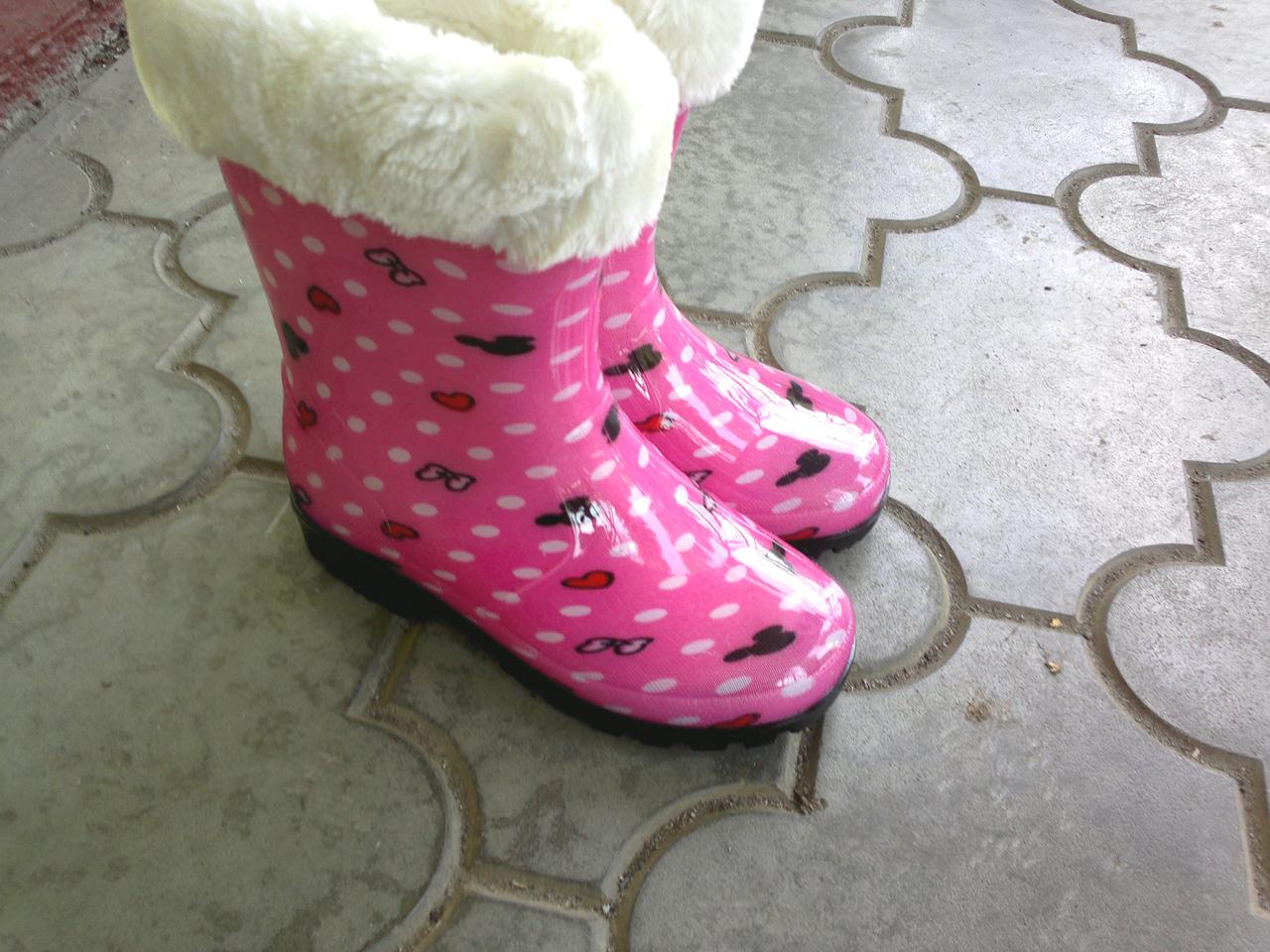 Модные, удобные, красивые детские резиновые сапоги на девочку с утеплителем, который можно снять, когда тепло.